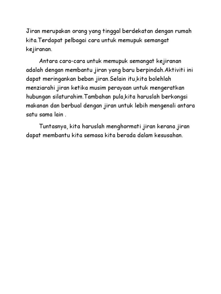 Cara Nak Memupuk Semangat Kejiranan Contoh Karangan Gahagian a